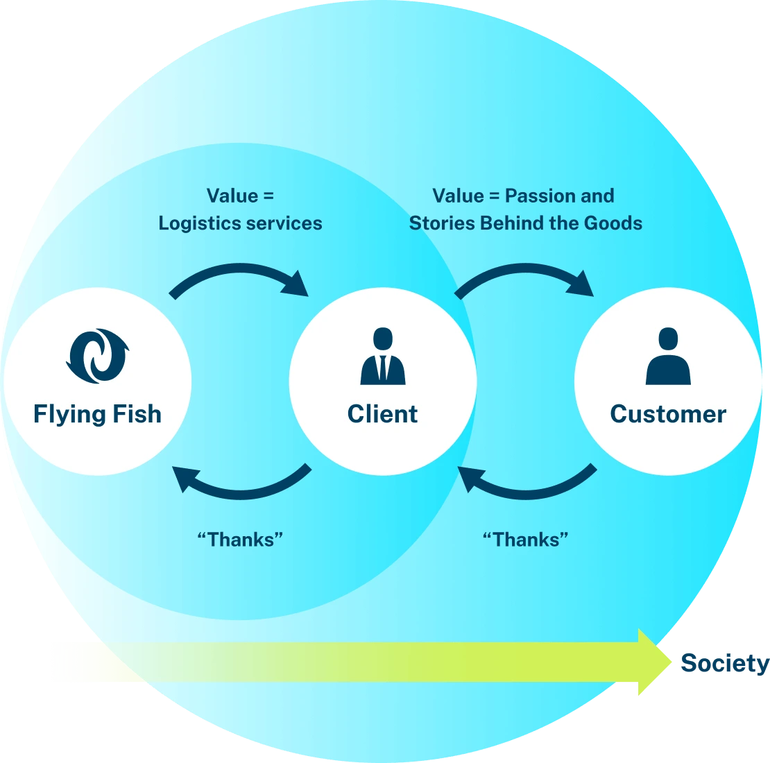 Transporting goods all over the world and connecting them with a chain of “Thanks”.